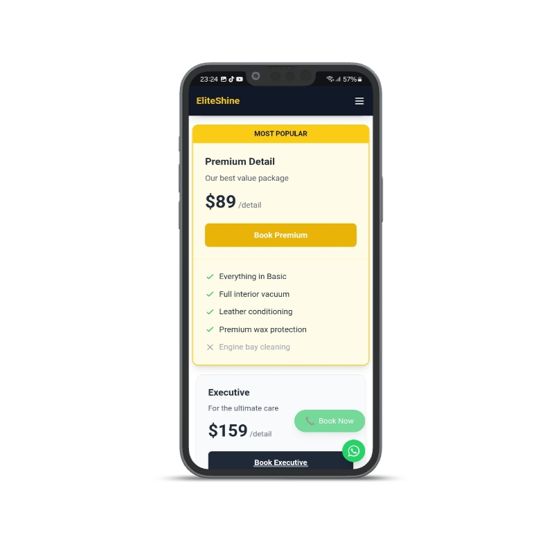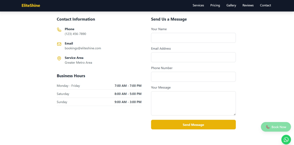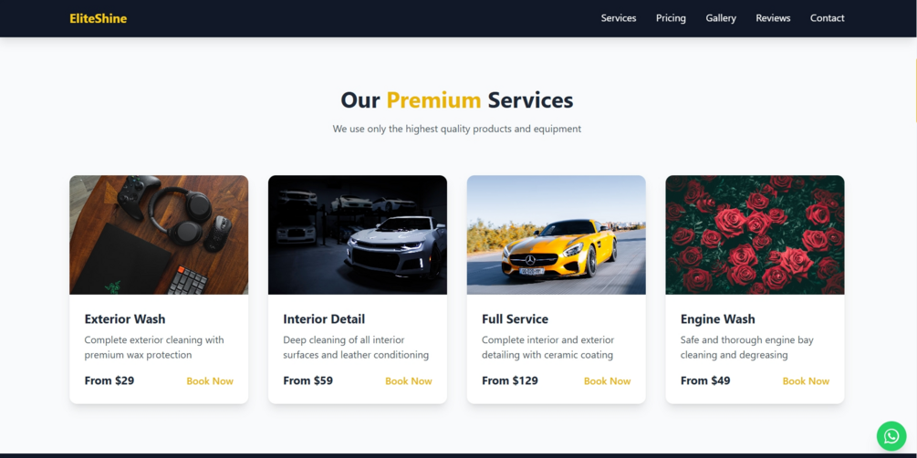 Elite Shine - Premium Car Wash Booking Template (Booking-Ready)