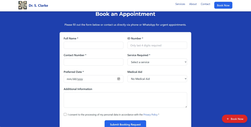 A professional booking website template for General Practitioners and private medical clinics. Designed with HTML, Tailwind CSS, and Vanilla JavaScript. Fully mobile-friendly, fast, and built for results.