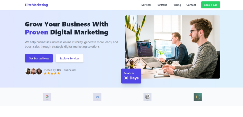 EliteMarketing - Digital Marketing Agency Booking Website Template (No Code | Instant Launch)
