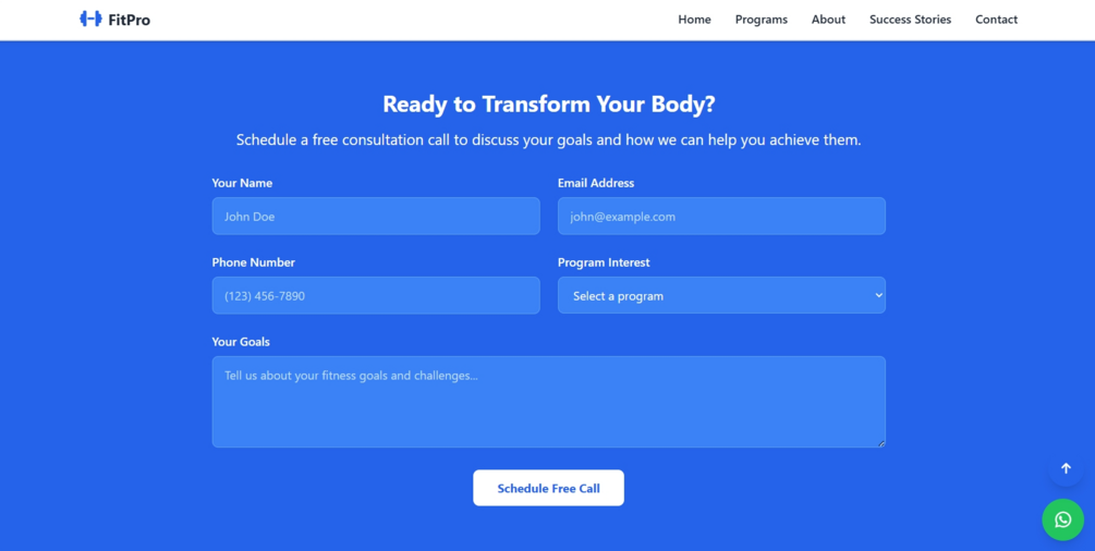 High-converting fitness coach website built with HTML, JS & Tailwind CSS — fully responsive, sleek, and booking-ready.