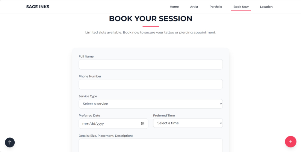 SageInks - Tattoo Booking Website Template (Booking Ready)